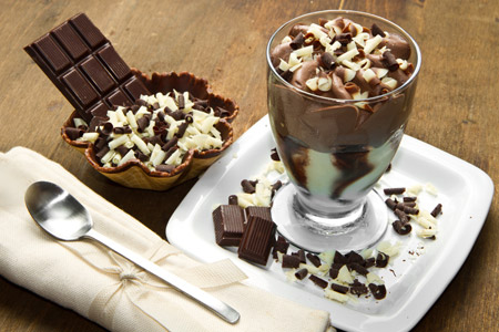 Βάζουμε σε ένα φαρδύ, σχετικά ψηλό ποτήρι μία μπάλα παγωτό Carte d' Or φιστίκι . Περιχύνουμε με όση θέλουμε από τη σάλτσα και τοποθετούμε από πάνω 1 μπάλα παγωτό Carte d' Or σοκολάτα. Γαρνίρουμε με κομματάκια σοκολάτας γάλακτος και λευκής. Συνεχίζουμε με τις υπόλοιπες μπάλες.