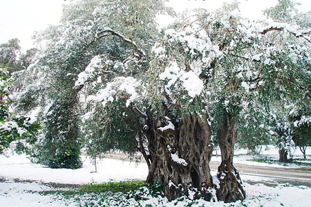 Aπό την Αλεξάνδρα Βαλλή, του Συνεταιρισμού Ροβιών, λάβαμε αυτήν την υπέροχη φωτογραφία της αιωνόβιας χιονισμένης ελιάς ως χριστουγεννιάτικη κάρτα. Ελιές βιολογικές παράγει ο συνεταιρισμός σ’ ένα χωριό της βόρειας Εύβοιας. Εξάγει το μεγαλύτερο μέρος της παραγωγής του και επιμένει στη βιολογική καλλιέργεια και τον σεβασμό του περιβάλλοντος και του καταναλωτή.