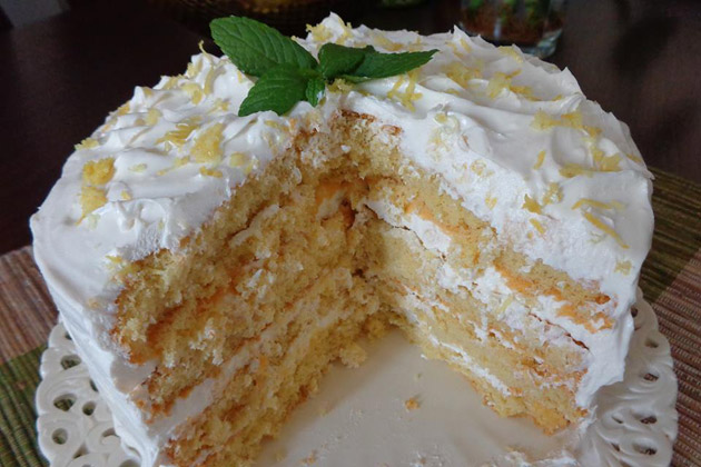 Από τα κέικ υπερπαραγωγή η Δέσποινα Κιτσιούλη έφτιαξε το αφράτο κέικ με κρέμα μασκαρπόνε και λεμόνι από το τεύχος 25 (σελ. 36) και έβαλε περισσότερη κρέμα!