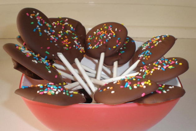 Η Λίζα Βαφιαδάκη έφτιαξε τα σοκολατένια γλειφιτζούρια από το (τεύχος 26, σελ. 108).