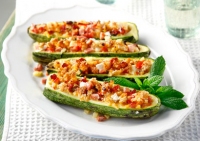 ΔιαδικασίαΠροθερμαίνουμε το φούρνο στους 180° C. Κόβουμε τα κολοκύθια στη μέση, κατά μήκος, και με ένα μικρό...