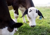 Δύο από τα γονιδιακά επεξεργασμένα μοσχάρια, που δεν αναπτύσσουν κέρατα, στο Σιου Σίτι της Αϊόβας.