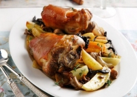 Τυπικά πελοποννησιακά υλικά (χοιρινό, πορτοκάλι, κυδώνια) παντρεύονται σε αυτή την εντυπωσιακή στην όψη και τη γεύση συνταγή.