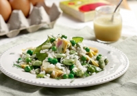 Το μυστικό της συνταγής είναι η χρήση των λουβιών των κουκιών, που θα δώσουν στο φαγητό την ανοιξιάτικη, γλυκιά γεύση του λαχανικού.