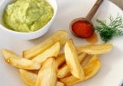 Τηγανίζουμε πατάτες κυδωνάτες και διαλέγουμε ανάμεσα σε δύο ιδιαίτερα ντιπ για να τις συνοδεύσουμε.