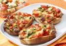 Ελληνική μπρουσκέτα με μικροσκοπικά κολοκυθάκια και γκρατιναρισμένη φέτα. Ψηθήκατε;