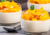 Δροσερό γλυκό με σάλτσα καλοκαιρινού φρούτου.