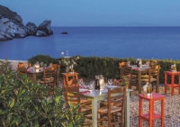 O σεφ φτιάχνει μια μαλακή βάση από φιστίκια Αιγίνης και για τη γέμιση αναμειγνύει γιαούρτι με κρητική κουρούπα.