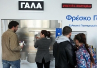 Ουρές μπροστά στο μηχάνημα αυτόματης πώλησης γάλακτος, το πρώτο στην Αθήνα, επί της οδού Πατησίων και Τροίας στην Κυψέλη, σχηματίζονται τις τελευταίες ημέρες.