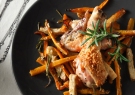 Κοτόπουλο με λαχανικά και κεφαλοτύρι στο φούρνο προτείνει ο Μανώλης Ασλάνογλου.