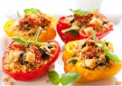 Μια συνταγή για διαφορετικά γεμιστά, μόνο με πιπεριές, με κουσκούς αντί για ρύζι, και με συ-ντο-μό-τα-το ψήσιμο.