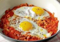 Αυγά «μάτια» με σάλτσα ντομάτας Με αυγά και 1 κρεμμύδι «σκαρώνουμε» ένα γρήγορο γεύμα για δύο, φτιάχνοντας τα γνωστά σε όλους μας «μάτια» αλλιώς. 13.05.2016
