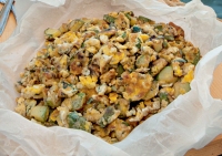 Η μαγείρισσα Λίνα Φουρνιστάκη μάς την ετοίμασε προσθέτοντας Σαν Μιχάλη, που καθώς πέφτει στο καυτό τηγάνι κάνει «τιριτιριτιριτί(μ)» και λιώνει.