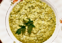 Εξαιρετικό έδεσμα που μας έφτιξε ο Λεονάρδος Ρούσσος είναι η μαϊντανοσαλάτα, σαν ψωμένιο πέστο α λα φραγκοσυριανά.