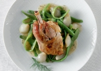 Δημιουργούμε φαγητά με έμπνευση από την ελληνική γαστρονομία όπως το αρνάκι με τα μελωμένα κρεμμυδάκια.