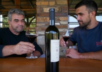 Ο Θεσσαλονικιός οινοποιός και αποσταγματοποιός μάς ξεναγεί στον αμπελώνα και στο οινοποιείο που με κόπο και μεράκι δημιούργησε, στην Οσσα Λαγκαδά.