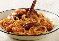 Σπιτική μακαρονάδα με χταποδάκι που μοσχοβολά κανέλα και γαρύφαλο. Μπορείτε να το φτιάξετε και με κοφτό μακαρονάκι.
