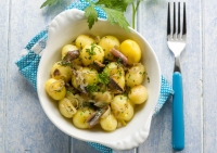 Μια γευστική σαλάτα που θα μπορούσε κάλλιστα να είναι και γεύμα αφού οι πατάτες το κάνουν ιδιαιτέρως χορταστικό.