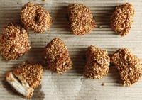 Αντί για αλεύρι ή πατατάλευρο, σε αυτή τη συνταγή πανάρουμε το μαριναρισμένο κοτόπουλο με σουσάμι.