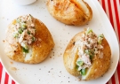 Οι περίφημες jacket potatoes των Αγγλοσαξόνων «γεμιστές» με μια πλούσια, αρωματική τονοσαλάτα – γεύμα κανονικό και νοστιμότατο.