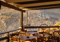 Στο μπαλκόνι του εστιατορίου του μανιάτικου ξενοδοχείου χορταίνουμε άγρια θέα και τοπικές σπεσιαλιτέ.