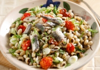 Καλοκαιρινό πιάτο με όσπρια και αλμυρό ψαράκι.