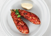 Η κρέμα φέτας αποτελεί τον ιδανικό συνδυασμό για το ιμάμ καθώς δροσίζει και εμπλουτίζει τη γεύση της μελιτζάνας αναδεικνύοντας τη.