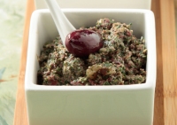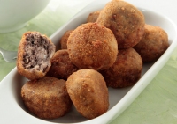 Οι ελιές Καλαμών δίνουν μια ξεχωριστή και πλούσια γεύση στα κεφτεδάκια.