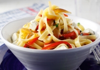 Ο συνδυασμός της πιπεριάς με τη φέτα και τον μαϊντανό στη σάλτσα απογειώνουν γευστικά τη μακαρονάδα.