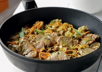 Με αφράτο πιλαφάκι και μια πράσινη σαλάτα με σταφίδες και αμύγδαλα, καβουρδισμένα έχουμε ένα πλήρες γεύμα για όλη την οικογένεια.