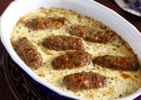 Οι σουβλίτσες μοιάζουν με σουτζουκάκια, ελαφρώς πιο μακρόστενα, και ψήνονται σε ταψί με ρύζι.