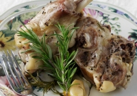 Το αρνί αυτό σιγοψήνεται για 8 ώρες και αρωματίζεται από τους ατμούς του κρασιού, το σκόρδο και το δεντρολίβανο.