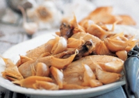 Οι σκελίδες μεστώνουν και γλυκαίνουν στον φούρνο, οπότε όταν σερβιρουμε η κρεμώδης σάρκα του σκόρδου έχει εντελώς ήπια γεύση. Στις 02/10 με την Καθημερινή!