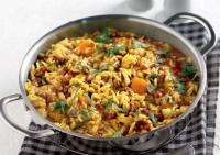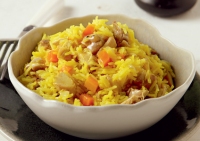 Υλικά(για 4 άτομα): 1½ φλιτζάνι ψαχνό από το υπόλοιπο βραστό ή ψητό κοτόπουλο, κομμένο σε μικρά κομμάτια, 2 μεσαίου μεγέθους κρεμμύδια, ψιλοκομμένα, 4 κουτ. σούπας ελαιόλαδο, 250 γρ. ρύζι μπασμάτι ή κίτρινο μακρύκοκκο, 1 μέτριο καρότο, τριμμένο στη...