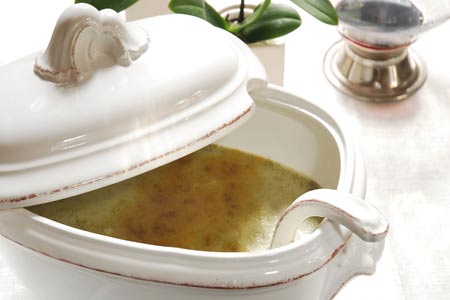 Σερβίρουμε τη σούπα πασπαλισμένη με λίγο κάρυ ή μαύρο πιπέρι. Συνοδεύουμε με ψωμί με λιωμένο τυρί.