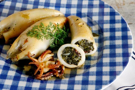 Καλαμάρια γεμιστά με σπανακόρυζο