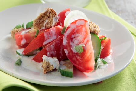 Είναι ιδανικό ντρέσινγκ για ντοματοσαλάτες, σκέτες, με παξιμάδι ή με τραγανές αραβικές πίτες, αλλά και για ζυμαρικά, για λαδερά φαγητά (τα οποία στην περίπτωση αυτή θα μαγειρέψουμε με λιγότερο λάδι) ή χορτοσαλάτες (π.χ. βλίτα βραστά).