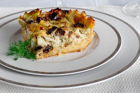 Τέλεια τάρτα με κανταΐφι, πράσα και δαμάσκηνα