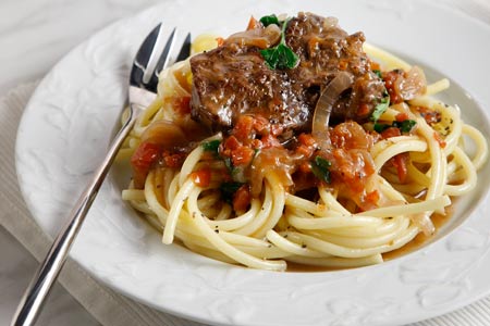 Μοσχάρι κοκκινιστό με μακαρόνια