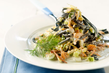 Μαύρες ταλιατέλες με καπνιστό σολομό