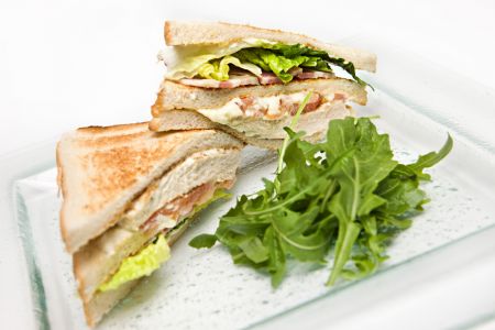 - Αν θέλουμε να κάνουμε το κλαμπ σάντουιτς πιο ελαφρύ, μπορούμε να αλείψουμε τις φέτες ψωμιού με μια απλή μουστάρδα και να αντικαταστήσουμε το απάκι με βραστό φιλέτο γαλοπούλας.