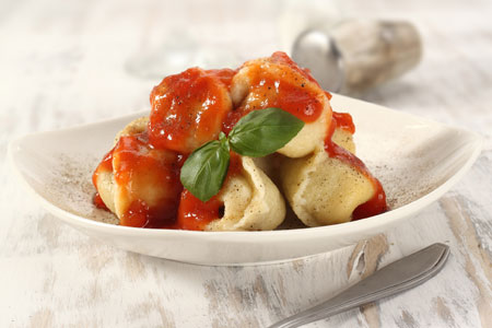 Τορτελίνια με σάλτσα ντομάτας, παρμεζάνα και φρέσκο βασιλικό