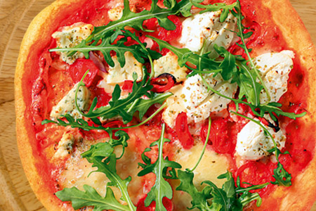Ατομικές πίτσες με ντομάτα και ρόκα