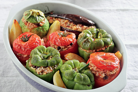 Μπόλικα κρεμμύδια, άφθονος δυόσμος και ωμή γέμιση (όχι σοταρισμένη) είναι τα μυστικά για τέλεια γεμιστά.