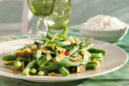 Τηγανητά φασολάκια με κάρι και αμύγδαλα