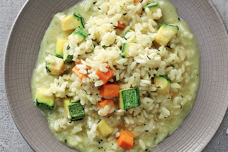 Ριζότο με το λαχανικό του μήνα, που δεν είναι άλλο από το καταπράσινο κολοκυθάκι.