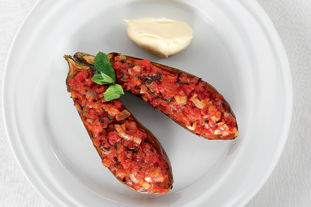 Η κρέμα φέτας αποτελεί τον ιδανικό συνδυασμό για το ιμάμ καθώς δροσίζει και εμπλουτίζει τη γεύση της μελιτζάνας αναδεικνύοντας τη.