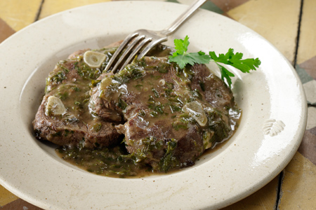 Το φαγητό αυτό προέρχεται από την εποχή της Ενετοκρατίας στο νησί. Πρόκειται για λεπτές φέτες από μοσχαρίσιο κρέας μαγειρεμένο με κρασί, πολύ σκόρδο και μαϊντανό.