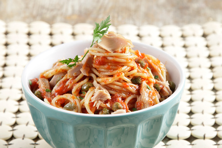Ζουμερή μακαρονάδα με τόνο, κάππαρη και φρέσκια ντομάτα