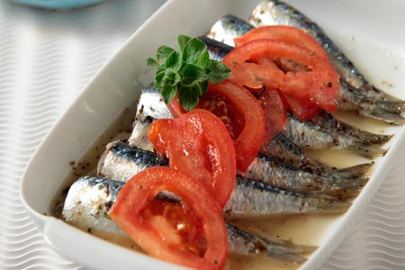 Σαρδέλες αχνιστές με κρασί, ντομάτες και λαδορίγανη